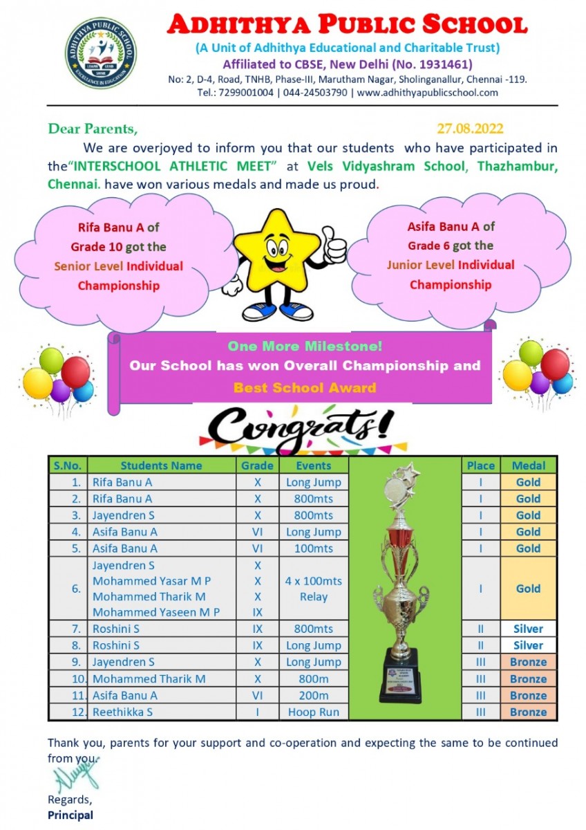 INTER SCHOOL ATHLETIC MEET-2022